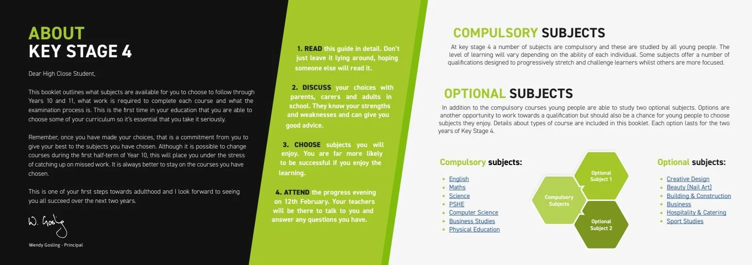 As a parent or carer, please discuss the different combinations of Options with your young people and encourage them to choose what they are interested in, and will commit to, for two years of study.